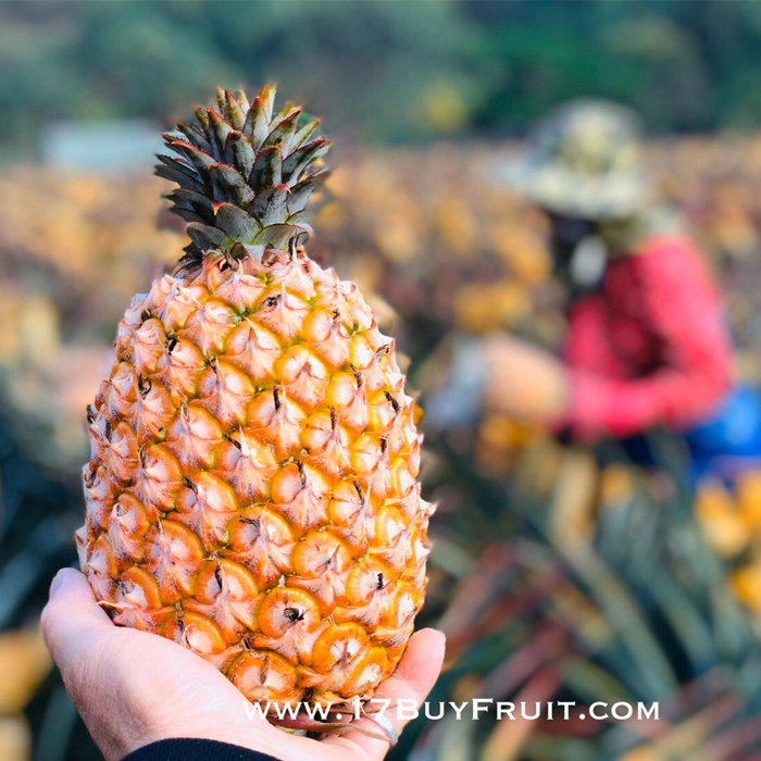 金黃色的陽光下,種出金黃色的{神農無毒金鑽鳳梨},黃澄澄的果肉,細緻不咬舌,香馥馥的氣息,甜到果心,整顆完食還意猶未盡,顛覆一般人對鳳梨的印象。 17BuyFruit 嚴選的無毒農場,堅持使用自然農法,農藥零檢出,具備產銷履歷認證,從苗果到果實,經550 天的栽培,只讓鮮果在植株上自然成熟到8 分,吸飽陽光與大地的養份,榮獲農業界的最高榮譽「全國十大神農獎」。此外,為了讓我們吃到最真、最好吃的本然原味,合作社使用自家鳳梨做原料做成的{神農金鑽鳳梨酥},完全無添加,就只有金鑽鳳梨、雞蛋、奶油、砂糖、麵粉的天然鳳梨酥,厚實紮實,帶有鳳梨酸甜,奶香濃郁。預訂後才製作,是最新鮮的下午茶和放學點心的選擇啦!遇到農忙時,想吃鳳梨酥,可得等等喲~