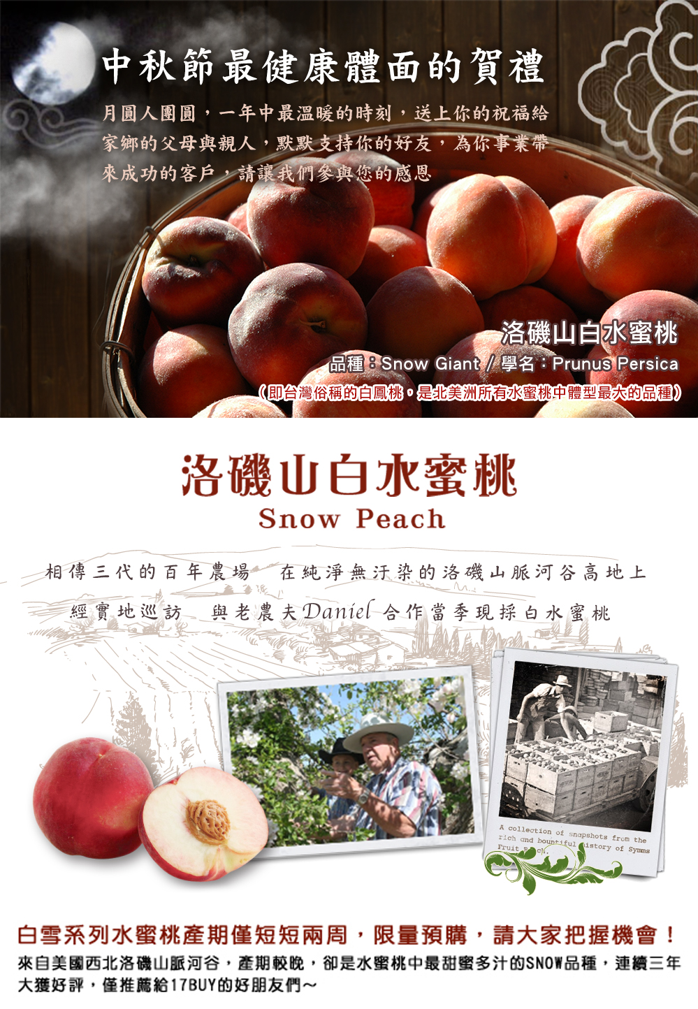 粉粉的水蜜桃多半是坐船來的,因為冰了好些時日,水分在船艙內已經流失,口感較差。我們的水蜜桃先在樹上待到完全成熟後,立刻經由手工採收裝箱上飛機,摘下樹梢的第三天就飛抵台灣,請先在室溫(不是高溫)陰涼處放至蒂頭處稍軟再冷藏,這樣才會水水嫩嫩,不會冰到乾掉,放軟再冰的水蜜桃還可以冰個一週以上呢!