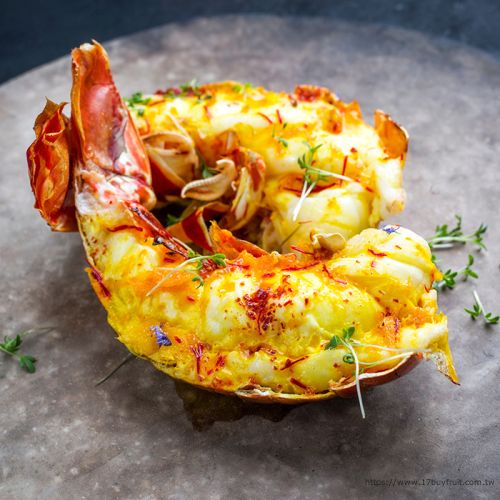 4.焗烤法:用水煮法將龍蝦煮約12分鐘至八分熟,取出戴手套將龍蝦剖對半,於肉身處淋上白醬並鋪上起士片,放入預熱好的烤箱以250度烤約5分鐘即可。