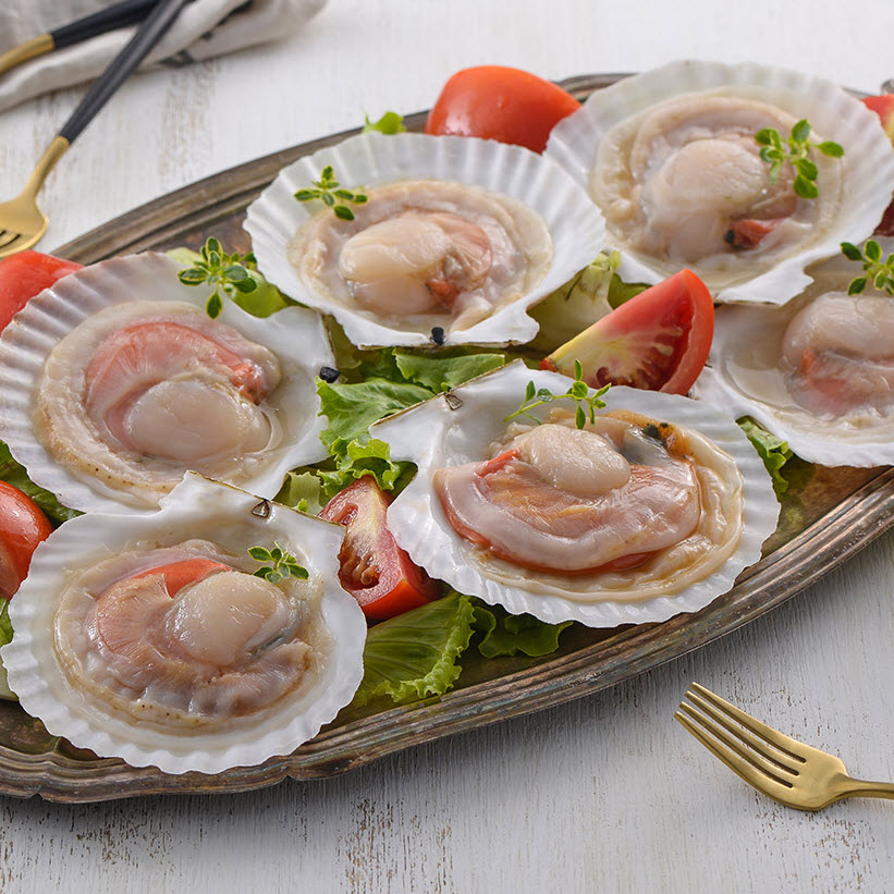 無汙染海域野生捕撈的半殼扇貝,為完整保存扇貝鮮悶的甘甜和風味上岸後急速冷凍,肉質飽滿、鮮甜,高CP值!已開殼去內臟,解凍即可料理,燒烤、香煎、清蒸皆美味。