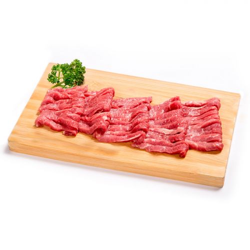 取自牛後腿肉,由於此部位運動量較大,脂肪含量低、略帶嚼勁,肉質緊實不油膩。